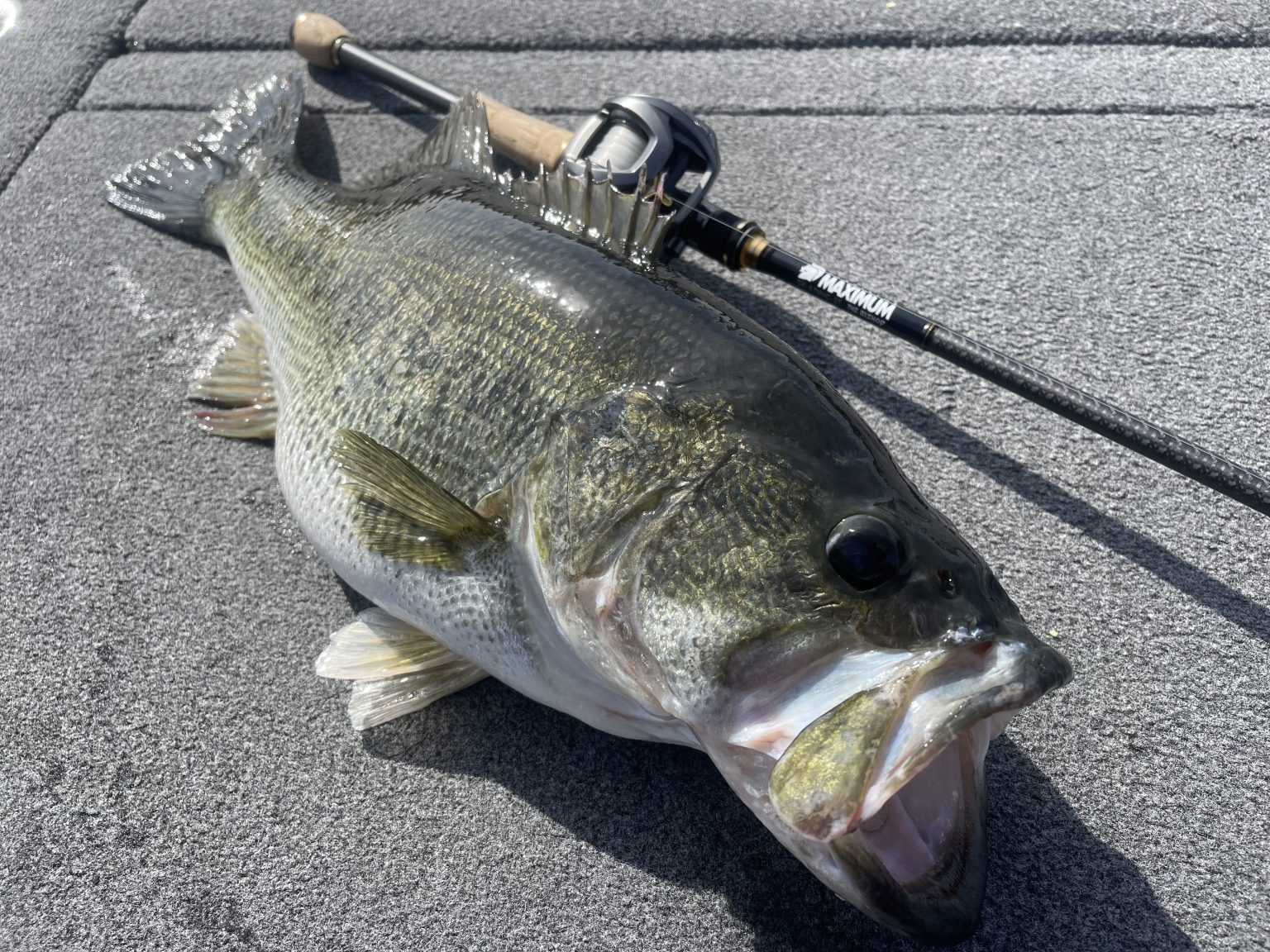 The following weekend at that same lake, the sun began to set and that infamous line – “3 more casts” was called out to my exhausted, sunburnt girlfriend on the back of the boat. We were fishing close by the launch ramp and I roll casted the 1/4 oz Gika-rigged Reins Ring Craw into a small pocket between two small submerged bushes in about 8 feet of water. As I slowly worked that rig up to the limb my line was strung over, I felt what seemed like a bluegill bite, as the perp cherrypicked my offering and took off. I immediately swung and soon realized this one had shoulders and the attitude of a drunk uncle. Through the brush it took me, as my sphincter puckered, feeling my line get dragged/shredded through the branches. Once again, I leaned back hard and grunted like I was about to give myself a hernia. The Bishop arched deeper into that backbone and had enough to turn that fish towards open water. I exhaled as a few half-hearted jumps and a dramatic head-shake finally ended with 7.29 pounds of pure joy being directed towards my hand. Once again, The Bishop’s tip section did its job of allowing that fish to eat the bait, while the backbone stepped in and kept it in check. That fish came boat-side with a look that said, “What the hell was that?”…
