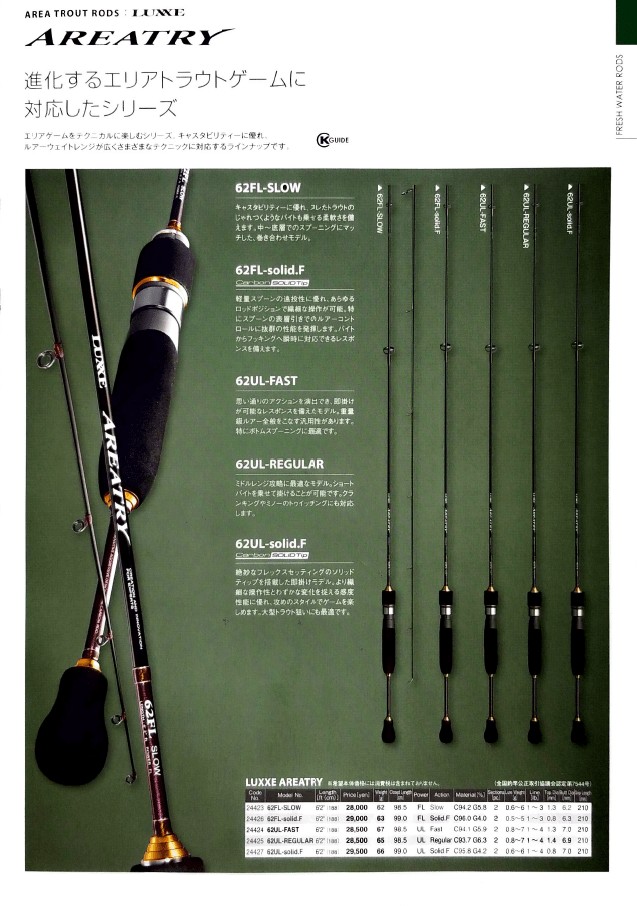 | 24427 | 62UL-solid.F | Solid.F | 6'2" | EVA | 66 | 1-4 | UL | C95.8 G4.2 | 29,500¥ |