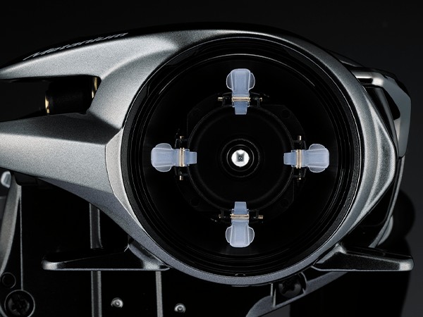 The level wind protector and side plate, which are usually made separately from the frame, are integrally molded with metal. It boasts high rigidity and realizes a compact body size that is easy to palm. The tough body that does not make noise even under heavy load makes it difficult for bending to occur when interacting with big fish or forcibly pulling out fish from the cover, realizing a stable winding comfort. It is a highly reliable new body structure that allows you to power fight with confidence.